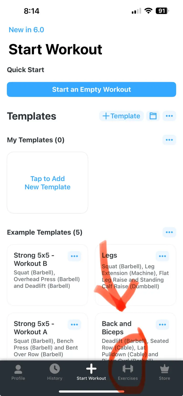 في الوجهة الرئيسية أنقر على : Execrsies